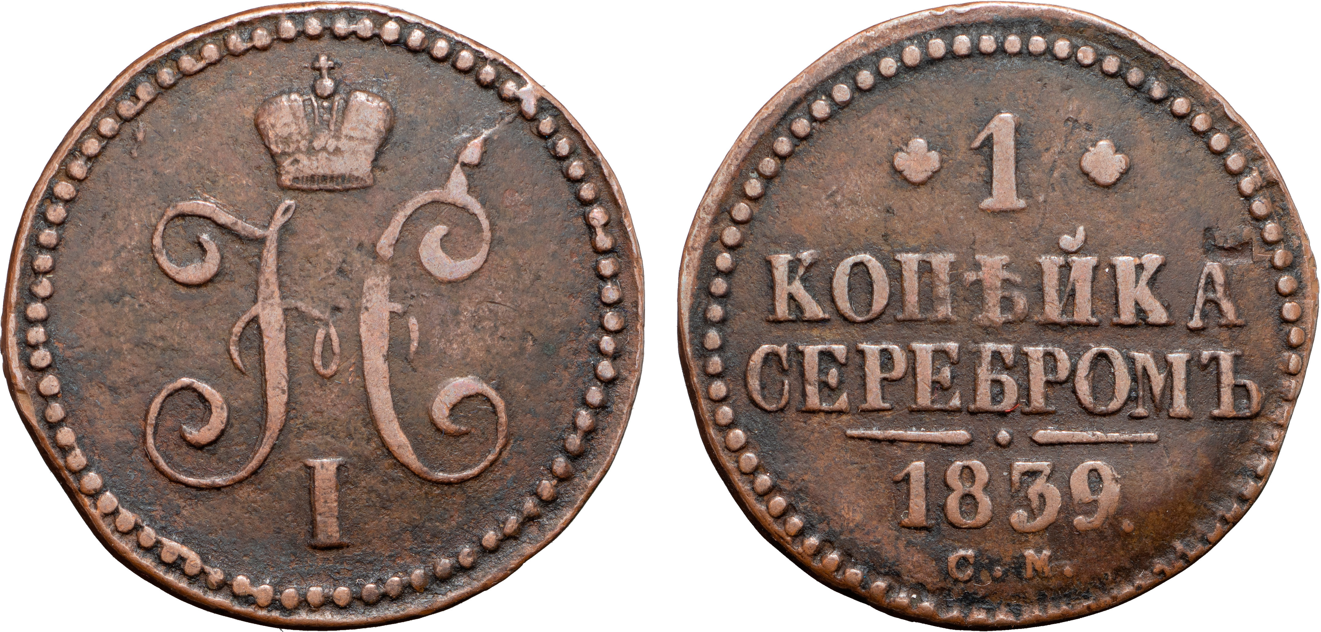 Первый этап денежной реформы 1839—1843 годов начался с издания 1 июля 1839 года манифеста «Об устройстве денежной системы». Согласно манифесту с 1 января 1840 в России все сделки должны были исчисляться исключительно в серебре. Главным средством платежа становился серебряный рубль с содержанием чистого серебра 4 золотника 21 доля (18 грамм).