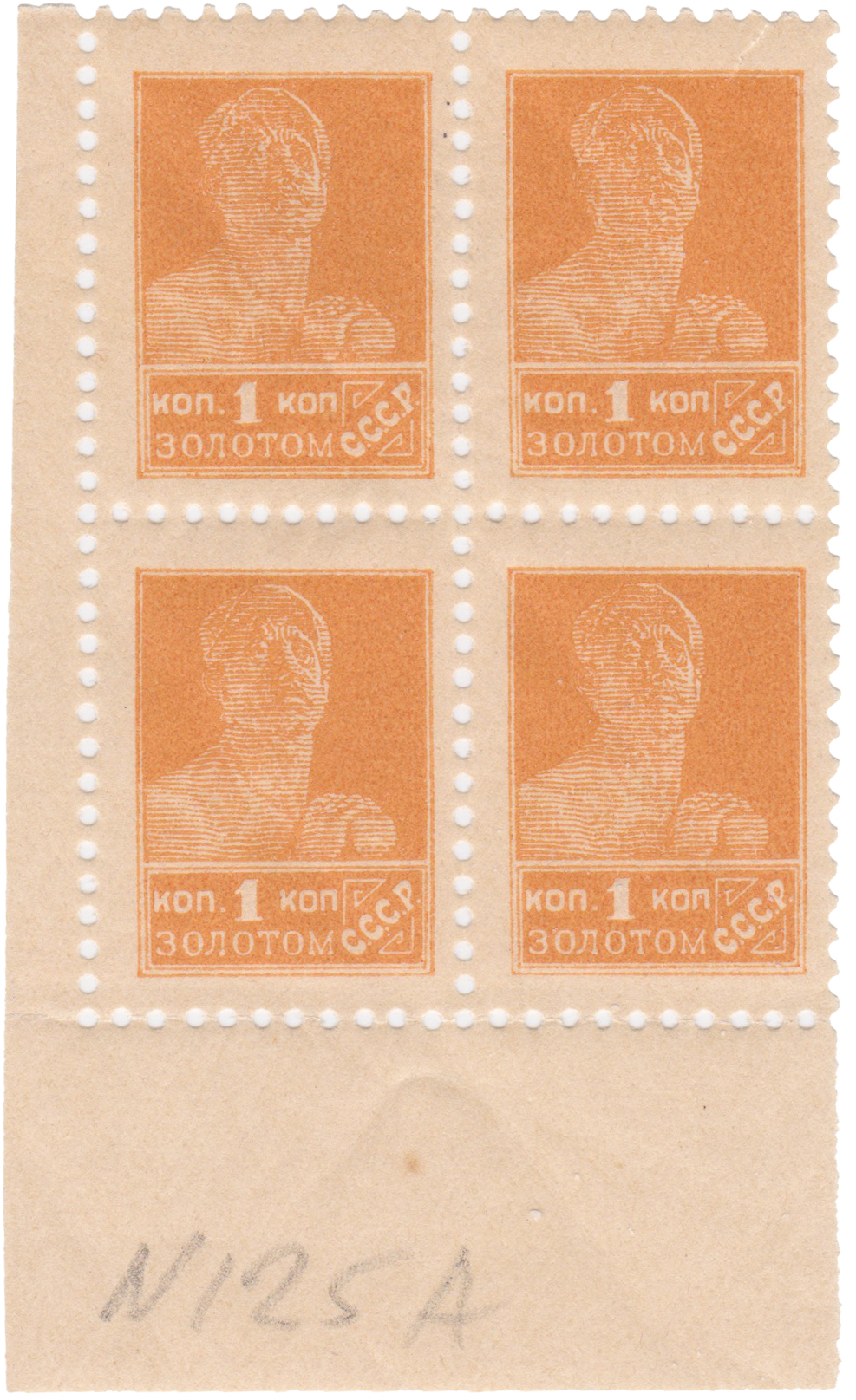 Марки первой стандартной серии СССР, номиналы которого даны в золотом исчислении, поступили в обращение 11 октября 1923 года. Их выпуск был связан с переходом на золотую валюту. Сюжет марки основан на скульптуре И. Д. Шадра «Рабочий», и совпадает с таковым на марке четвёртого стандартного выпуска РСФСР 1923 года.